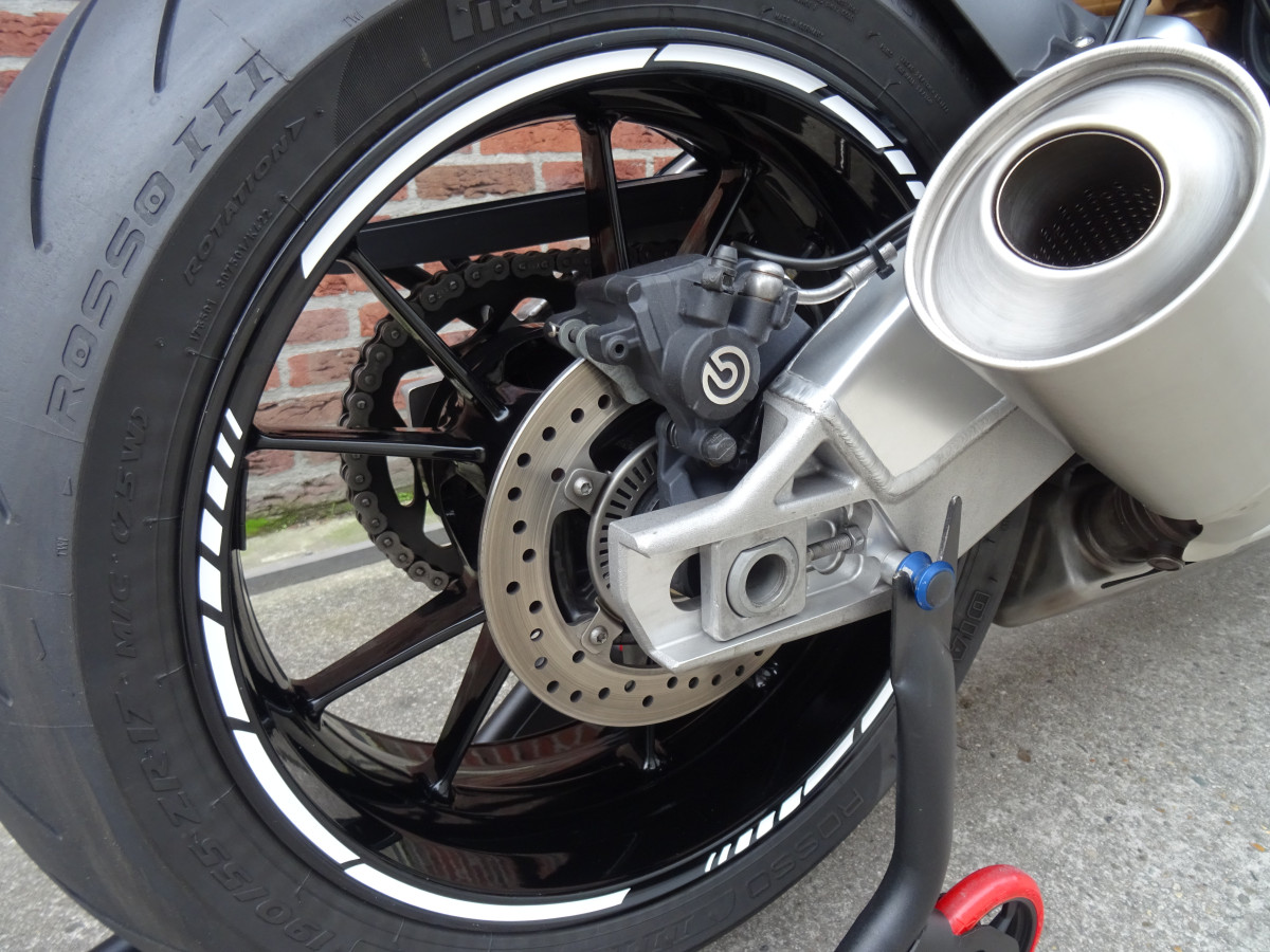 De S1000RR verkeerd in Zeer Goede Staat! Geen beschadigingen of krassen op te zien. Hij is gewoon als Nieuw! Prachtige fiets, die perfect onderhouden is. Enkel met goed weer bereden en binnen gestald gestaan. Voordat de motor op internet kwam heeft hij nog een onderhouds beurt bij BMW Dealer Biqer te Eindhoven gekregen. Hierbij is hij voorzien van nieuwe olie en olie filter, rem olie voor + achter ververst en is de nieuwste software ingelezen. Factuur daarvan is aanwezig. Daarna heb ik de motor nog voorzien van een nieuwe Pirelli Rosso III voorband, nieuwe Yuasa accu gemonteerd en is de luchtfilter gereinigd. De achterband, remmerij, ketting en tandwielen is in Perfecte Staat! Kortom opstappen en rijden zonder bij komende onkosten,