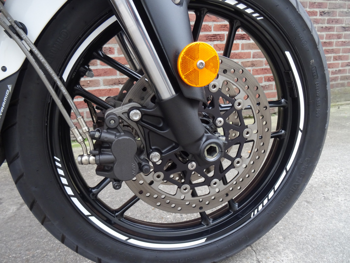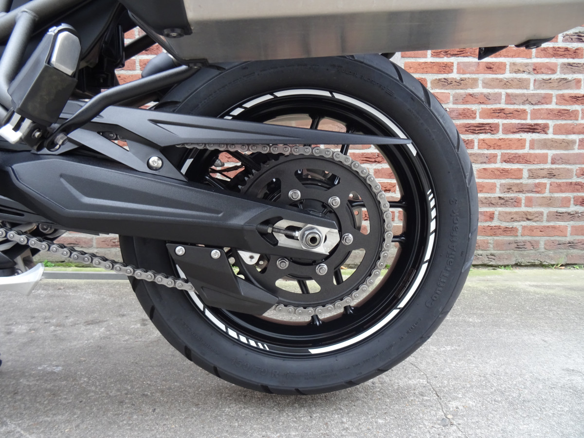 De Motor verkeerd in Zeer Goede Staat! Zeker geen beschadigingen of krassen op te zien, hij is gewoon echt als Nieuw, zelfs de koffers zien er keurig netjes uit! Ik heb de motor overgenomen van 2e eigenaar, die hem perfect onderhouden heeft! Met goed weer bereden en binnen gestald gestaan. De motor heeft voordat hij op internet kwam alvast zijn grote 20.000km onderhouds beurt gekregen. Dit zodat hij er dan perfect bij staat en dat je na aanschaf geen bij komende onkosten krijgt. Bij de beurt is uitgevoerd: kleppen gecontroleerd / gesteld (foto's aanwezig), nieuwe iridium bougies gemonteerd, nieuwe olie en olie filter, rem olie voor + achter ververst, luchtfilter gereingd en een helemaal netjes na gekeken. De Continental Conti-Trailattack III banden set is 300km oud, dus net ingereden! De remmerij, ketting en tandwielen zijn in perfecte staat! Kortom opstappen en rijden zonder bij komende onkosten,