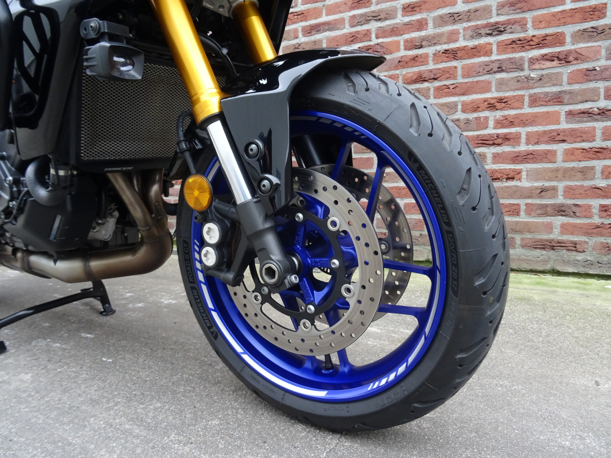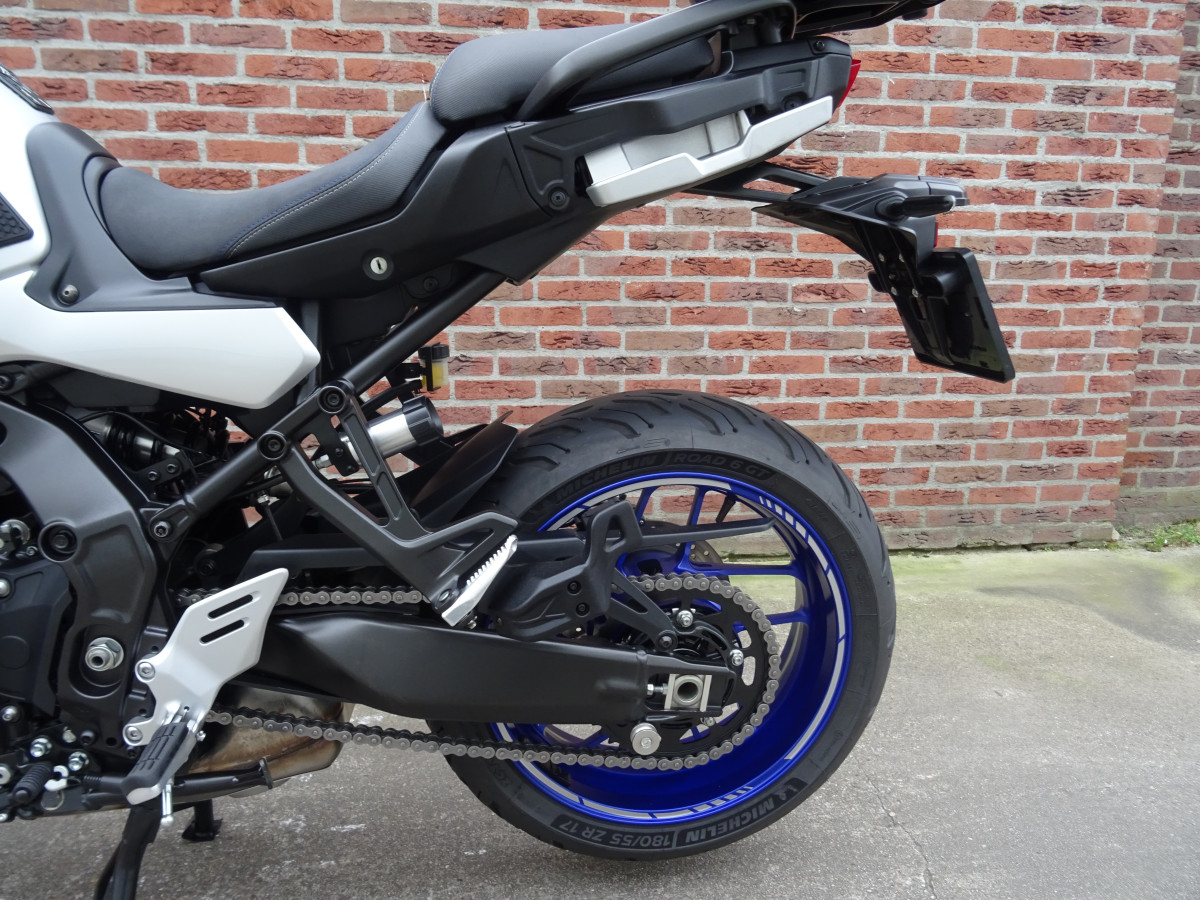 Verder naast deze standaard fabrieks componenten is de motor nog uitgebreid met een Originele Yamaha Topkoffer incl. rugsteun, Originele Yamaha Valdoppen, Originele Yamaha Valbeugels, Originele Yamaha Verstralers, Originele Yamaha Radiateur beschermer, Puig verhoogd Windscherm en een Mooie Wielstriping. Dus een prachtig opgebouwde Tracer 9 GT waar je eigenlijk niets meer aan hoeft te doen. De motor word afgeleverd met de boekjes, facturen van de onderhouds beurten en alle drie de sleutels (2 zwarte 1 rode). De Tracer GT heeft een zeer makkelijke zit waardoor hij ook zeer geschikt is voor dagelijks gebruik. Hij is van alle markten thuis je kunt er heerlijk mee toeren maar ook zeer sportief mee rijden. Door het geweldige 890cc 3 cilinder blok heb je overal vermogen waardoor hij een zeer fijne vermogens afgifte heeft. Dus kortom een mooie complete motor die start klaar staat voor het nieuwe seizoen,
